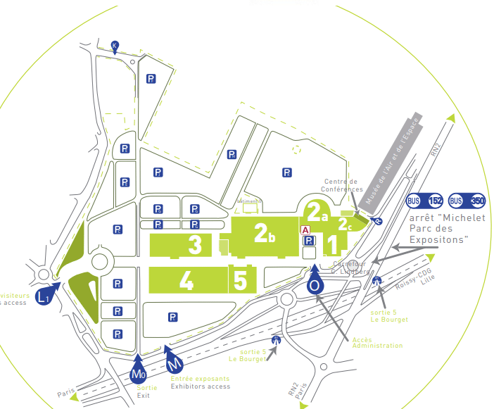 - Rendez-vous au salon en voiture sur le parking P1 (Tarif journalier: 10€) ou avec les transports en commun via le RER B en direction de Paris Charles De Gaulle.